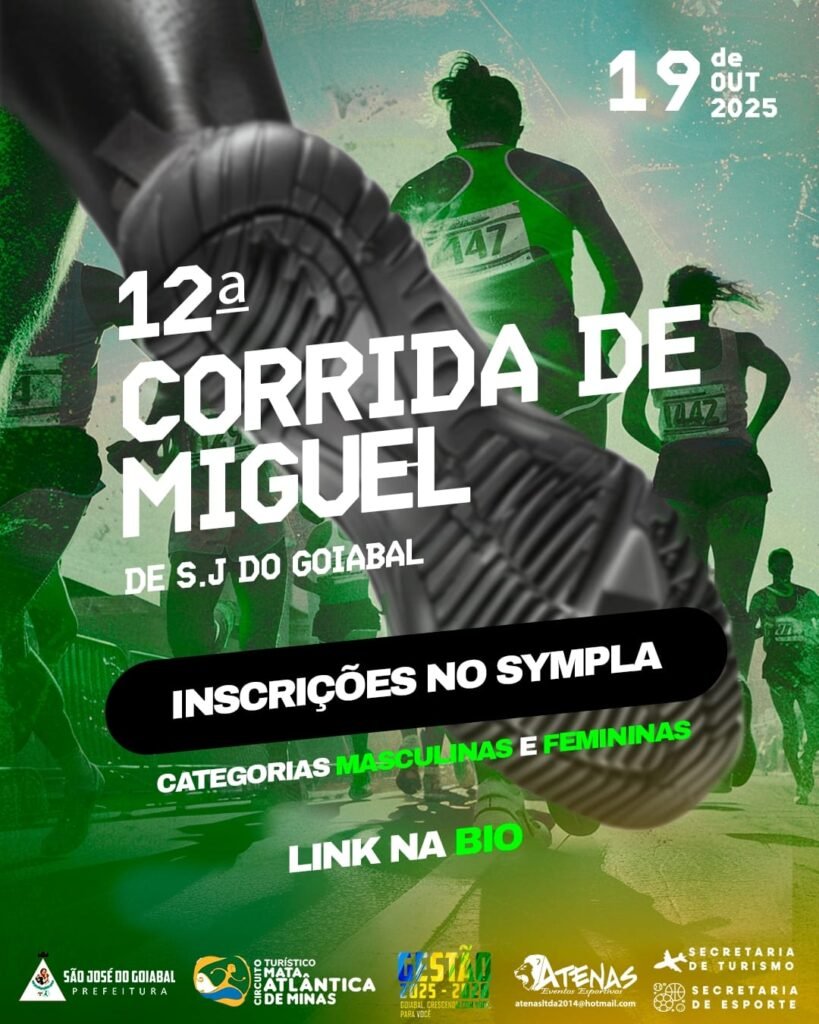No dia 19 de outubro de 2025, São José do Goiabal será palco da 12ª Corrida de São Miguel, um dos eventos esportivos mais tradicionais da região. A competição promete reunir atletas e entusiastas da corrida de rua em um percurso de 5 km, marcado pela energia da comunidade e o espírito esportivo.