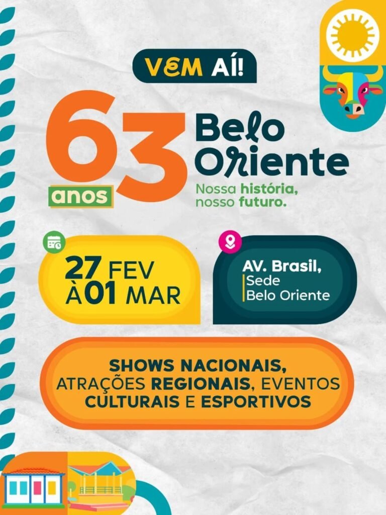 Mais do que uma festa, a programação celebra a trajetória de Belo Oriente, destacando suas conquistas, sua gente e suas tradições. É um convite para olhar para o passado com orgulho, viver o presente com alegria e projetar um futuro ainda mais promissor para o município.