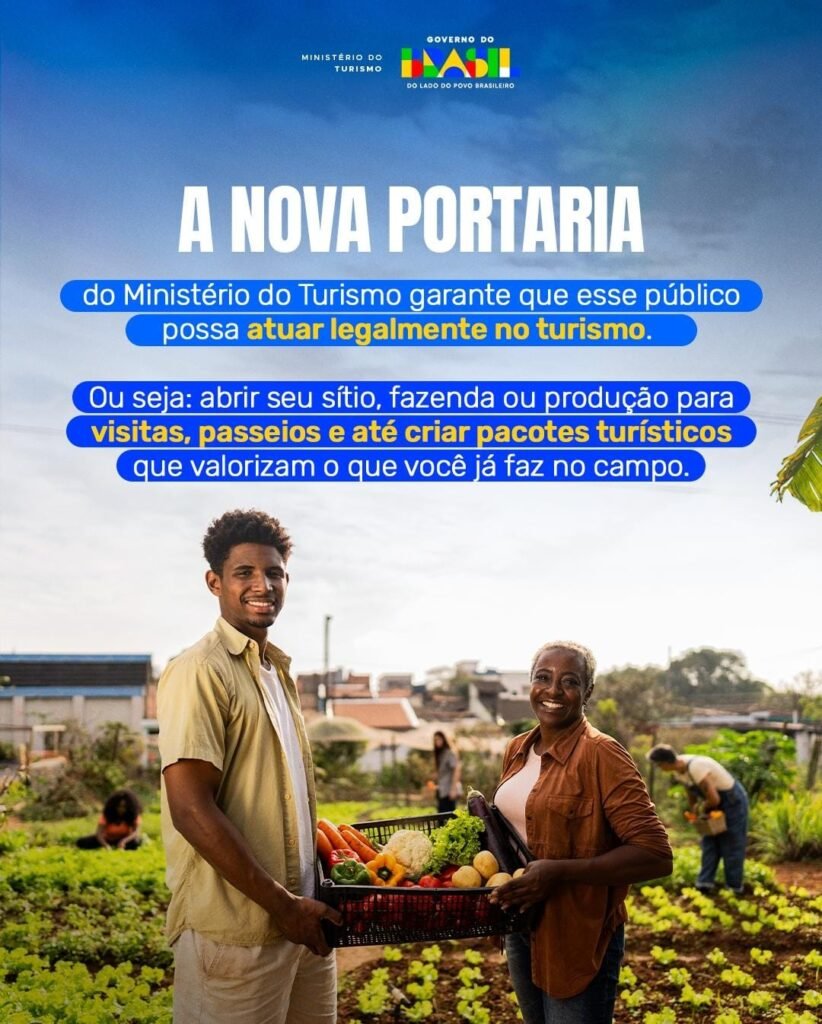 Produtores rurais e agricultores familiares que oferecem serviços turísticos agora podem se registrar no Cadastur sem perder benefícios garantidos por outros programas federais. O benefício abrange agricultores familiares que atendem a critérios específicos, além de silvicultores, pescadores artesanais, extrativistas, povos indígenas, quilombolas e outras comunidades tradicionais. A portaria também contempla produtores rurais que desenvolvem atividades agropecuárias, pesqueiras ou silviculturais, tanto em áreas urbanas quanto rurais.