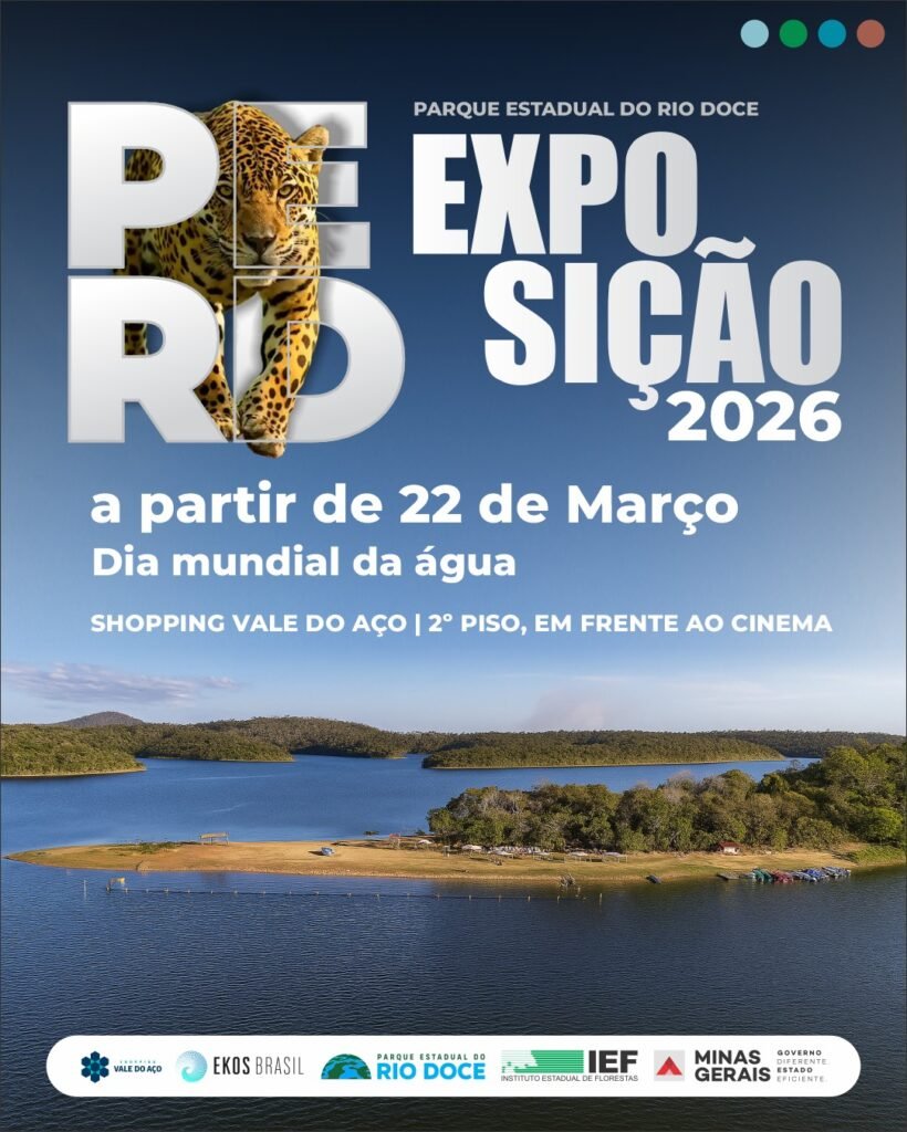 A exposição “PERD – Exposição 2026” será aberta ao público a partir deste domingo, 22 de março, no Shopping Vale do Aço, celebrando o Dia Mundial da Água com foco na preservação ambiental. A mostra destaca a riqueza natural do Parque Estadual do Rio Doce, uma das maiores áreas contínuas de Mata Atlântica preservada do estado.