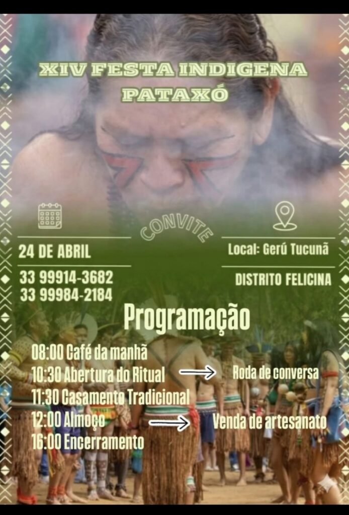 A XIV Festa Indígena Pataxó já tem data marcada e promete reunir tradição, cultura e espiritualidade no distrito de Felicina. O evento será realizado no dia 24 de abril, na aldeia Gerú Tucunã, fortalecendo a valorização das raízes indígenas e o intercâmbio cultural com a comunidade regional.