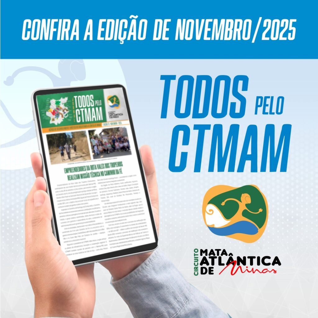 A edição de outubro do Jornal do Circuito Mata Atlântica de Minas reúne os principais acontecimentos que movimentaram a região, com matérias que valorizam o turismo, a cultura, o empreendedorismo e o meio ambiente. O informativo traz uma retrospectiva das ações realizadas pelos municípios associados e parceiros, reforçando o papel do CTMAM na promoção do desenvolvimento regional sustentável.